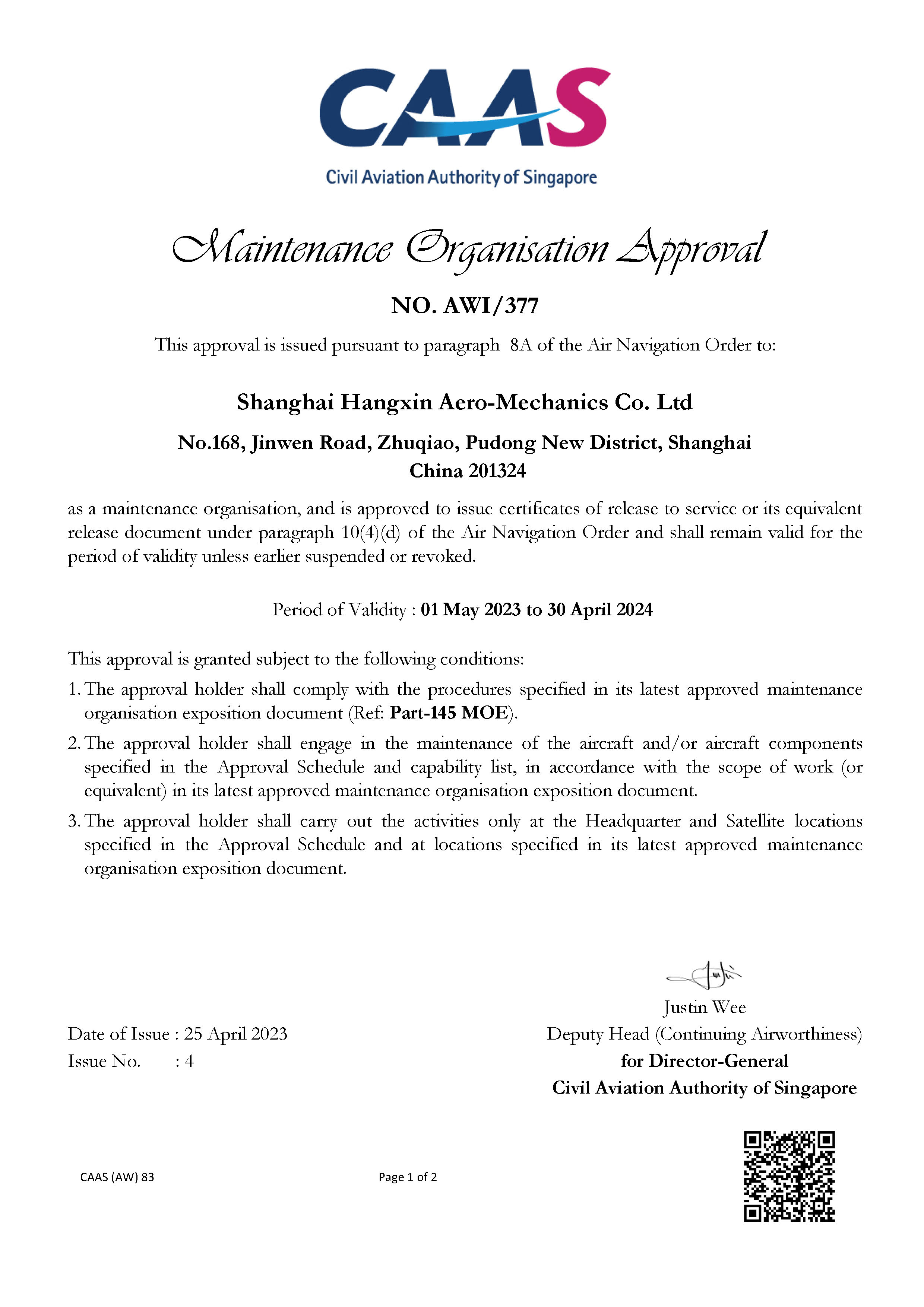 新加坡维修许可证(上海航新...